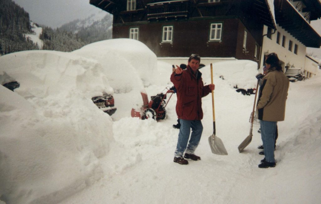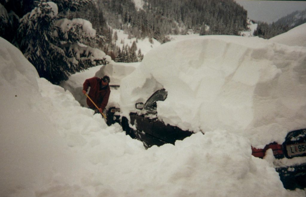 Dann fing es zu schneien an und es hörte tagelang nicht auf. Alle Lifte standen wegen Lawinengefahr still, nur ein Schlepplift im Tal lief. So war schon bald nach dem Frühstück bis in den Nachmittag „Apres Ski“ im „Krazy Känguruh“ oder „Mooserwirt“ angesagt. Aber das hält ja fast niemand durch. Die Straße aus St.Anton war wegen Lawinengefahr gesperrt. Als dann am sechsten Tag der Schneefall aufgehört hatte und die Sonne schien gabs für uns nur eins: wir wollten raus aus dem Tal, nicht daß die Straße wieder gesperrt wird. Die Lifte liefen ja ohnehin noch nicht, da das ganze Gebiet wegen Lawinengefahr gesperrt blieb.