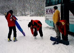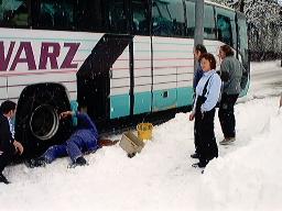 Die 3.Tagesskifahrt mit dem Skiclub ging dieses Mal entsprechend dem Programm nach Alpbach. In der Nacht hatte es stark zu schneien begonnen, so daß alle Straßen und auch die Autobahnen mit Schnee oder Schneematsch bedeckt waren.