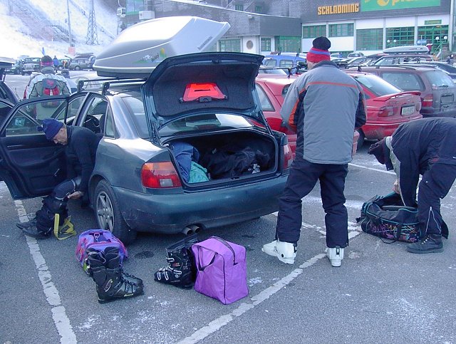 Pünktlich um 6.00 Uhr starteten wir mit drei Autos Richtung Sportwelt Amade‘ im Salzburger Land. Für den ersten Tag hatten wir uns Schladming als Ziel ausgesucht. Wie es nicht anders zu erwarten war, lag auch in Schladming kein Schnee, die Schneekanonen liefen aber auf Hochtouren.