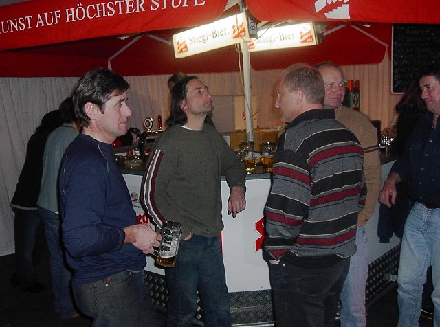 Gegen 16.00 Uhr beendeten wir den schönen Skitag. Jetzt wollten wir unsere müden, leicht brennenden Muskeln in der Sauna wieder auf Vordermann bringen. Die Sauna war aber immer noch defekt. Das Dampfbad war zwar auch recht schön, konnte die Wirkung der Sauna aber nicht ersetzen.  Je nach Geschmack folgte jetzt eine Ruhepause oder ein Aufenthalt in der Hotelbar, bis es um 18.30 Uhr wieder Zeit für den Besuch des Festzeltes war. Nach dem Abendessen spielte an diesem Tag eine österreichische Band, die „5 Ennstaler“ im Zelt, die aber nicht gerade unseren bayerischen Musik-Geschmack traf.