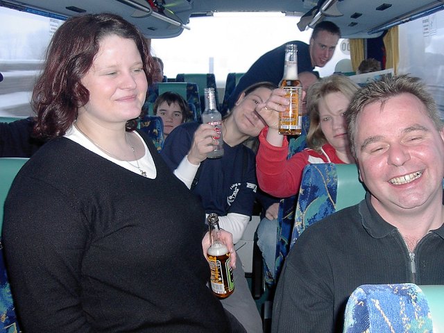 Pünktlich um 15.30 Uhr waren tatsächlich alle am Bus angekommen, so dass wir zur geplanten Abfahrtszeit die Heimreise antreten konnten. Die Rückfahrt war schneller vorbei als die Fahrt ins Skigebiet. Wir hatten dabei wieder jede Menge Spaß. Es wurde gelacht, geratscht und einiges an Bier getrunken. Der Versuch den Biervorrat unseres Busfahrers zu vernichten gelang aber nicht.