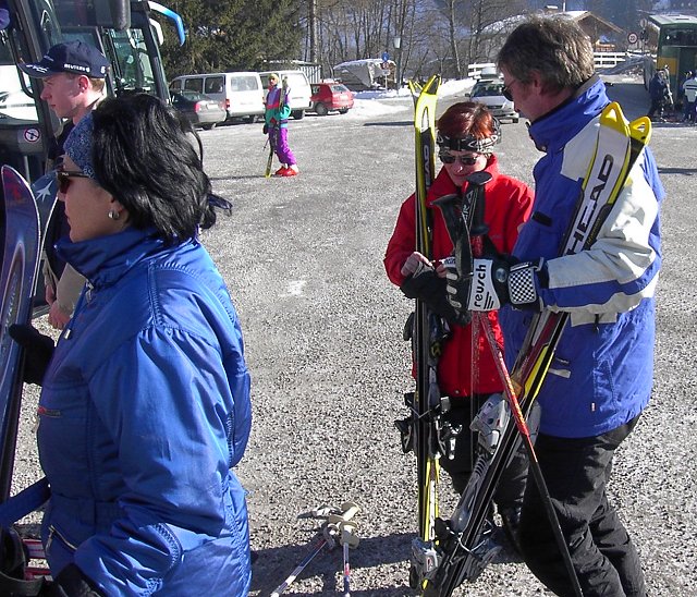Wir fuhren wieder durch München, da der Verkehr auf der Umgehungsautobahn stockte. Dann ging es aber sehr flott weiter. Im Bus wurde schon ausgiebig gefeiert. Die Folge waren natürlich viele Pinkelpausen. Dennoch kamen wir gegen 09.30 Uhr in Großarl an. Es herrschte ein Winterwetter, wie man es sich fast nicht schöner vorstellen kann.