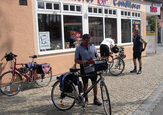 Jetzt führte uns der Weg hauptsächlich auf gut ausgebauten teils geschotterten, teils auch geteerten Wirtschaftswegen nach Laaber, Sandsbach und Schierling. Da wir inzwischen immerhin 51 Kilometer zurückgelegt hatten, machten wir in Schierling kurz Pause. Es gab einen Capuccino in einer Bäckerei und dazu etwas Gebäck.
