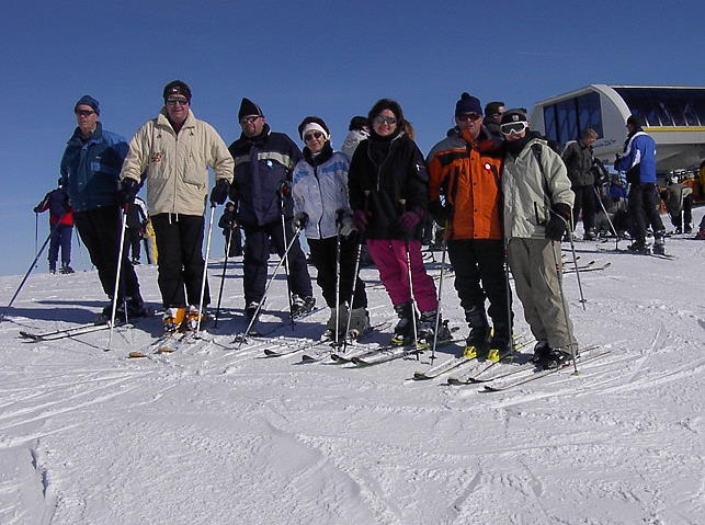 Unsere Gruppe startete mit der 6-er Sesselbahn Schneekar nach oben. Dann fuhren wir zur Unterbergalm runter und gleich wieder hoch. Als nächstes ging es über die schwarze Abfahrt „Devils Run“ runter und mit dem Lärchwaldexpress zum Penken hoch. Dann weiter zur neuen 6-er Sesselbahn Knorren. Hier beginnt eine neue schwarze Abfahrt, die „Harakiri“-Piste. Diese Abfahrt wird nur sehr guten Skifahrern empfohlen. Wir mussten sie natürlich ausprobieren. Schon bald stellten wir fest, warum sie „Harakiri“ heißt. Die Abfahrt ist ziemlich steil und war sehr hart. Siggi und Engelbert rutschten aus und schlitterten fast die ganze Steilpiste runter. Glücklicherweise hatten sie sich aber nicht verletzt. Engelbert vermisste nur seine Mütze.