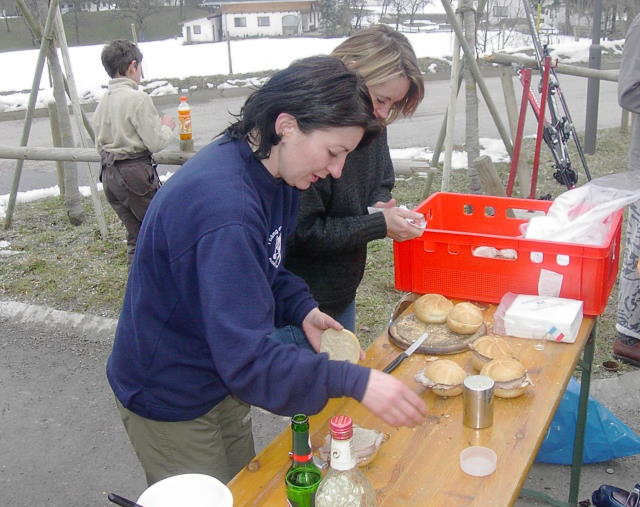 Michaela, Petra und Ludwig hatten für uns Schmankerl vorbereitet. Es gab Bratensemmeln, sowie Willi mit Birne.