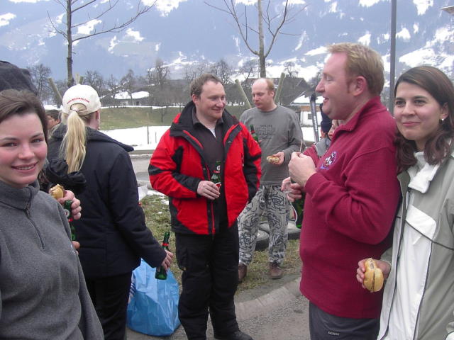 Während Ludwig und Michaela die Liftpässe besorgten, machten sich die Teilnehmer der Schmankerlfahrt für den Skitag fertig.