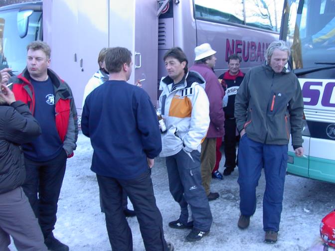 Am Bus trafen sich die verschiedenen Gruppen von Skifahrern wieder. Wir verstauten unsere Ausrüstung und machten uns fertig zur Abfahrt nach Hüttschlag. Einige Skifahrer des Skiclubs Au machten bei uns halt. Auch sie waren mit mehreren Jugendlichen und Kindern übers Wochenende in Großarl beim Skifahren. Gemeinsam wurde über den superschönen Skitag geschwärmt. Niemand von uns hatte so schönes Wetter erwartet, da eigentlich Schneefall angekündigt worden war. Aber zum Glück hat der Wetterbericht nicht immer recht.
