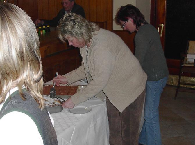 Das Essen (Suppe, Salat vom Buffet, Hauptessen ebenfalls vom Buffet und Nachspeise) wurde bald aufgetischt und schmeckte wirklich gut. Jeder sollte satt geworden sein. Nach dem Essen wurde natürlich noch geratscht, gefeiert und gesungen. Einige kamen früher und einige umso später ins Bett. Die Theke war jedenfalls lange gut besucht.