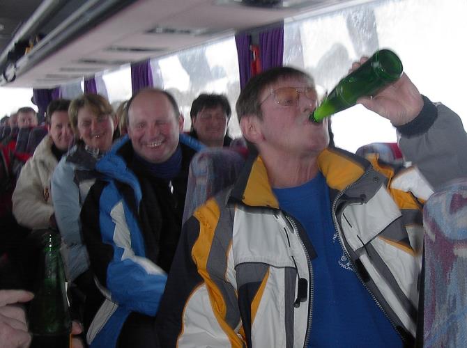 Pünktlich um 15.30 Uhr waren tatsächlich alle am Bus angekommen, so dass wir zur geplanten Abfahrtszeit die Heimreise antreten konnten. Die Rückfahrt ging schnell und wieder ohne Stau vorbei. Wir hatten wieder jede Menge Spaß im Bus. Es wurde gelacht, geratscht und einiges an Bier getrunken. Der Versuch den Biervorrat unseres Busfahrers zu vernichten gelang aber auch heuer nicht.