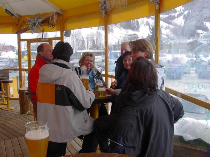 Jetzt waren die Abfahrten entlang er 6-er Sesselbahn Wengerhochalm und der Fulseckbahn angesagt. Mehrmals fuhren wir diese Pisten runter. Schließlich wechselten wir wieder ins Großarler Skigebiet. Hier fuhren wir gleich mal ins Tal runter und wieder hoch. Inzwischen hatten einige Lust auf Kaffee bekommen. Zu fünft fuhren wir aber weiter. es ging nochmals ins Tal und auch mal mit der 6-er Sesselbahn Harbach hoch. Im Tal verließen uns dann die restlichen zwei weiblichen Skifahrerinnen. Georg, Werner und Peter „mussten“ aber nochmals hoch, da der Skitag und die Schneeverhältnisse einfach zu gut waren um schon aufzuhören. Erneut fuhren wir von der Bergstation der Gondelbahn durchs „Himmelreich“ runter ins Tal. Inzwischen war es 16 Uhr geworden. Ein kurzer Drink an der Skibar, dann mussten wir schon zum Bus, da wir um 16.30 Uhr Richtung Hüttschlag zu unserer Unterkunft losfahren wollten.