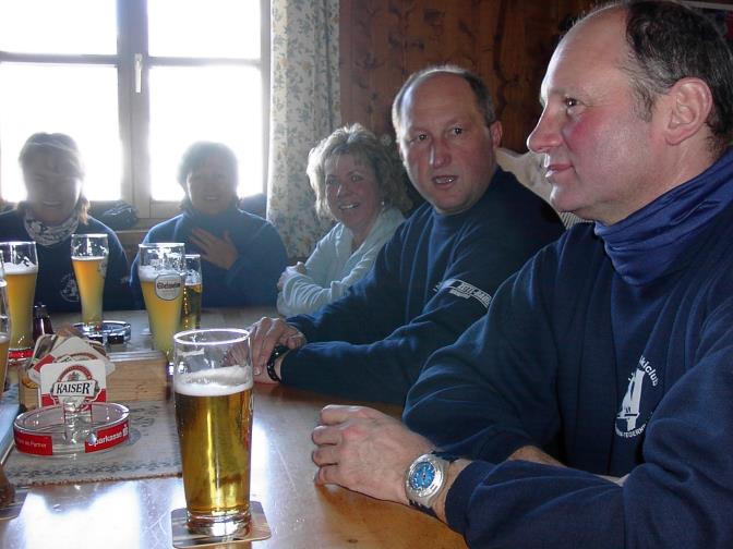Die Mitglieder der verschiedenen Skifahrergruppen erzählten, was sie alles erlebt hatten. Ein besonderes Erlebnis hatte die Gruppe, die unter Führung von Ernst eine kleine „Bergtour“ unternommen hatte und etwa 15 Minuten aufgestiegen war. Als Belohnung konnten die Skifahrer eine super Tiefschneeabfahrt in unberührtem Schnee genießen.