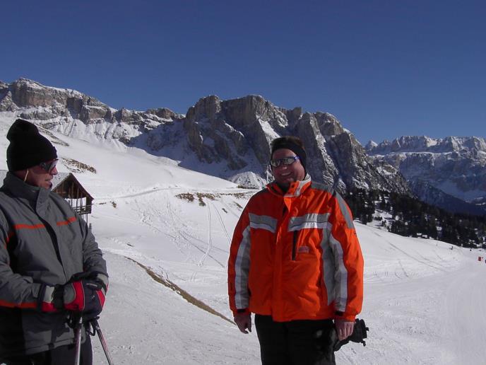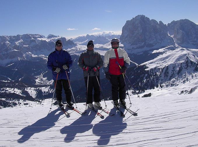 Schnell und ohne Probleme kamen wir bis zur Grenze nach Österreich. In Kufstein Süd fuhren wir raus um für unser Auto den in Österreich billigeren Sprit zu tanken. Wir selbst gönnten uns Kaffee. Dann ging es weiter über den Brenner nach Südtirol. Hier war nochmals eine kurze Kaffeepause angesagt, bevor wir ins Grödnertal abbogen. Nach St.Ulrich und St.Christina erreichten wir gegen 10.00 Uhr Wolkenstein, das Ziel unserer Fahrt. Als erstes kauften wir uns 3-Tages-Skipässe und machten uns dann auf die Suche nach einer Unterkunft. Sie sollte in Zentrumsnähe liegen und nicht zuviel kosten.