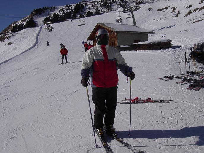 Die ziemlich steilen Abfahrten von Arabba waren uns bestens bekannt und gefielen uns auch heute sehr gut. Wir fuhren daher gleich nochmals hoch und auf einer anderen Abfahrt wieder runter ins Tal. Dann mussten wir etwa 10 m durch den Ort auf die andere Talseite gehen. Hier fuhren wir mit zwei Sesselliften auf den nächsten Berg. Inzwischen war es fast 13 Uhr und damit Zeit für die Mittagspause geworden. Wir suchten uns wieder ein Lokal aus, in dem wir auch bedient wurden. Das Essen war gut allerdings brachte sich die Bedienung selbst um ein höheres Trinkgeld, da sie unbedingt nicht einzeln, sondern nur alles zusammen abrechnen wollte.