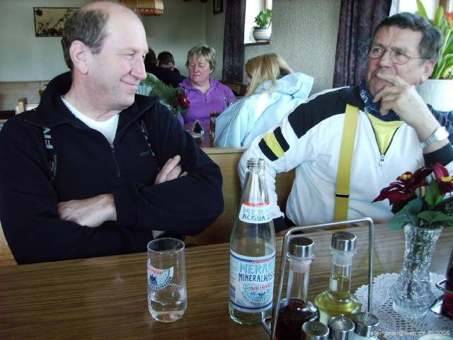 Nach dem guten Abendessen war ein Spaziergang durchs Dorf und dann ein Halt im „Andechser Hof“ angesagt. Während zuerst Stefan und dann bald auch Siggi nach Hause gingen, hielten es Peter und natürlich Georg länger aus. Auch ein letzter „Absacker“ in der Gaststube vom „Gasthof zur Sonne“ war natürlich bei beiden selbstverständlich. Schließlich landeten aber auch wir auf unserem Zimmer und genossen unsere wohlverdiente Ruhe.