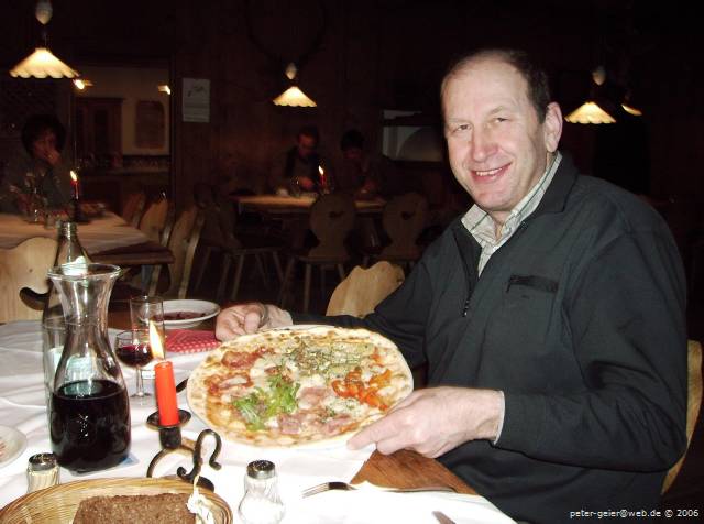Abends ging es zum wohlverdienten Abendessen in den Gasthof „Krone“. Wir genossen Riesenpizzas bzw. Siggi natürlich sein gewohntes Steak. Zum Essen wurde natürlich wieder Südtiroler Rotwein getrunken. Wir machten dann noch einen kleinen Spaziergang durchs Dorf, bevor wir auf ein oder zwei Getränke im „Andechser Hof“ einkehrten. Anschließend war Nachtruhe und Vorbereitung auf den nächsten Tag angesagt.