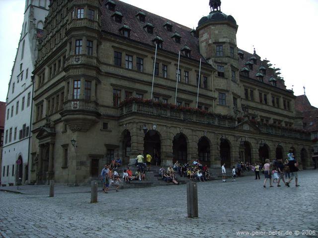 Langsam waren Wolken aufgezogen und der Himmel wurde schwarz. Die ersten Regentropfen fielen. Wir stellten uns unter und wollten das Ende des Regens abwarten. Zu lange brauchten wir nicht warten. Schon nach fünf Minuten hörte der Regen auf und die aufgeheizten Straßen waren ruckzuck wieder trocken. Gegen 15 Uhr und nach 53 einfachen, kräfteschonenden Tageskilometern erreichten wir Rothenburg ob der Tauber, das Ziel unserer dritten Tagesetappe.
