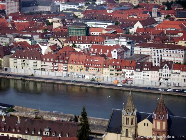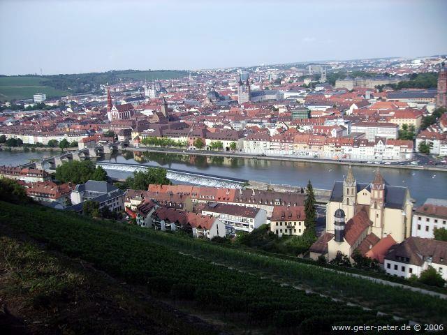 In den fünften Tag starteten wir wie an den Vortagen um ca. 9 Uhr nach einem guten Frühstück. Zuerst fuhren wir weiter im Taubertal, dann aber rechts hoch in Richtung Würzburg. Der Weg stieg jetzt ständig leicht an. Dann kam ein heftiger Anstieg, eine schnelle Abfahrt und gleich nochmals ein ziemlicher Anstieg. „Fertig“ und ausgepowert kamen wir oben an. Nach einer Wasserpause ging es aber besser weiter. Würzburg war nicht mehr weit. Schon bald konnten wir immer bergab nach Würzburg reinfahren. Hier sahen wir ziemlich schnell den Unterschied zwischen einer Stadt mit 150.000 Einwohnern und den kleinen Städten mit vielleicht 10 – 15.000 Einwohnern in denen wir zuvor Halt gemacht hatten. In Würzburg herrschte Verkehr. Und was für einer. Wir mussten ganz schön aufpassen um nicht mit anderen Radfahrern oder Fußgängern zusammen zu stoßen oder eine Ampel zu übersehen.