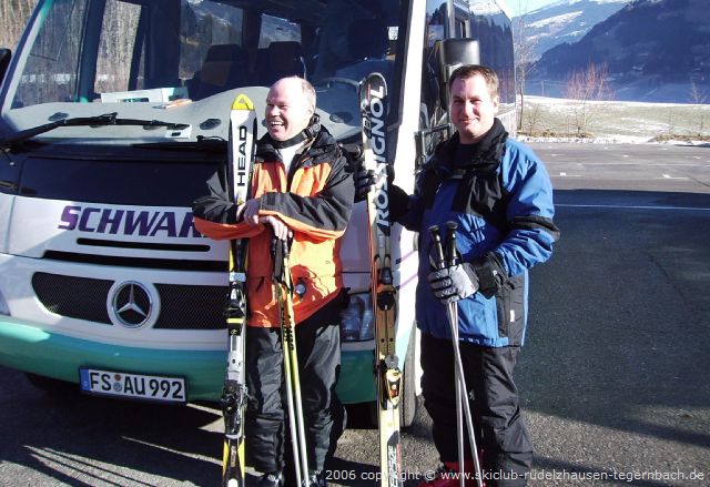Unser Busfahrer holte uns dieses Mal mit einem ziemlich kleinen Bus der Firma Schwarz ab. Aber der Bus passte genau, da nur 14 Skifahrer und Snowboarder mitfuhren. Wir fuhren um 5:20 Uhr in Rudelzhausen los. Über Mainburg ging es auf die Autobahn. Trotz der frühen Stunde war heute schon einiges los. Wir kamen aber doch zügig und ohne Stau nach Österreich. An der neuen Rastanlage der ehemaligen Grenzanlagen legten wir eine WC-Pause ein. Dort herrschte aber schon ein Wahnsinnsandrang. Wie sich herausstellte zogen sich viele Frauen anderer Reisegruppen im WC um, putzten sich die Zähne und „richteten“ sich für den Tag her. Kein Wunder, dass unsere weiblichen Mitfahrerinnen so lange anstehen mussten. Joe nutzte die Zeit um das in den Radioschacht gefallene Gerät zu suchen und es in Gang zu bringen, damit wir endlich etwas Musik machen konnten. Nach dem zwangsweise etwas längeren Halt fuhren wir auch auf der Inntalautobahn ohne Stau weiter. Kurz vor der Ausfahrt Zillertal stockte der Verkehr dann doch noch. Anscheinend wollten alle ins Zillertal. Es ging daher etwas zäher weiter, gegen 9:15 Uhr kamen wir aber in Hippach, unserem Ziel, an. Es herrschte super Wetter. Die Sonne schien von einem tiefblauen Himmel und es war kein Wölkchen zu sehen. Spätestens jetzt war uns allen klar: Das konnte nur ein super Wochenende werden.