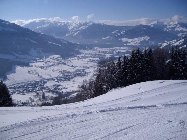 Nach der Mittagspause fuhren wir wieder zur Kummeralmbahn, dann weiter zur Tanzbodenalm, bevor wir mit der Osthangbahn auf den Brandstadl hochfuhren. Jetzt wollten wir die Abfahrt zur Mittelstation in Scheffau ausprobieren. Auch diese Abfahrt war sehr gut zu befahren. An der Mittelstation sahen wir, dass fast alle Skifahrer weiter ins Tal abfuhren. Diese Abfahrt sollte zwar nicht präpariert sein und war eigentlich auch gesperrt, aber wir „mußten“ sie doch ausprobieren. Natürlich war sie problemlos zu befahren und nur auf den letzten 500 Metern wirklich nicht gut präpariert. Wieder oben angekommen machten wir noch eine schnelle Scheffau-Brixen-Runde: Eibergbahn, Aualmbahn, Zinsbergbahn, Jochbergbahn, Kummeralmbahn und zurück mit der Osthangbahn auf den Brandstadl.