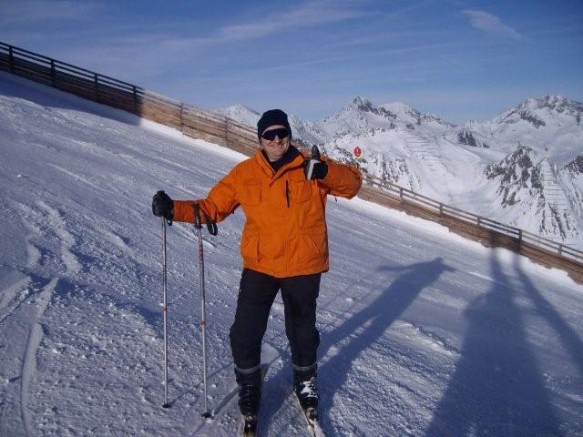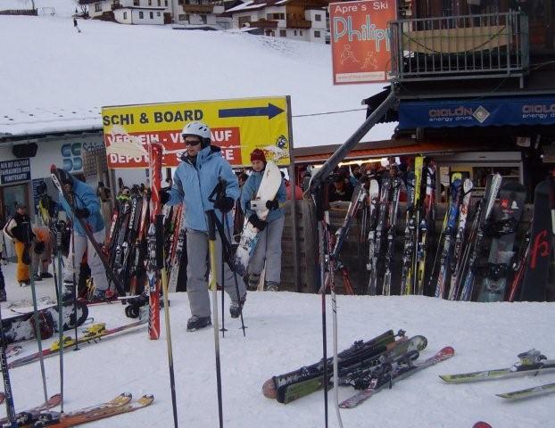 Weiter ging es zur Talstation der Giggijochbahn. Auf der Fahrt dorthin kamen wir an der Obstlerhütte vorbei, eigentlich ein Muss, aber wir waren jetzt wieder heiß aufs Skifahren und wollten erst später dort einkehren. So fuhren wir wieder nach oben und dann weiter mit der Silberbrünnlbahn auf eine Höhe von 2660 m. Da die Abfahrt ins Tal so gut war, fuhren wir gleich nochmals runter und tatsächlich schon wieder ohne an der Obstlerhütte zu halten. Wieder ganz oben beschlossen wir in Richtung unseres Ausgangspunktes (Gaislachkogl) zu fahren und heute beim „Philipp“ und dann erst morgen in der Obstlerhütte einzukehren. Auch diese Talabfahrt war gut präpariert und super zu befahren.