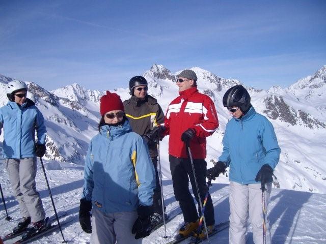 Schnell hatten sich ein paar Gruppen von Skifahrern und Snowboardern zusammengefunden, die jeweils gemeinsam das Skigebiet von Sölden erkunden wollten. Mit der Gaislachkoglbahn I und II fuhren wir 1670 m in die Höhe und konnten dann auf dem 3050 Meter hohen Gaislachkogel ein „Riesenpanorama“ genießen. Aber wir hatten natürlich nur wenig Zeit, denn wir wollten ja Skifahren.