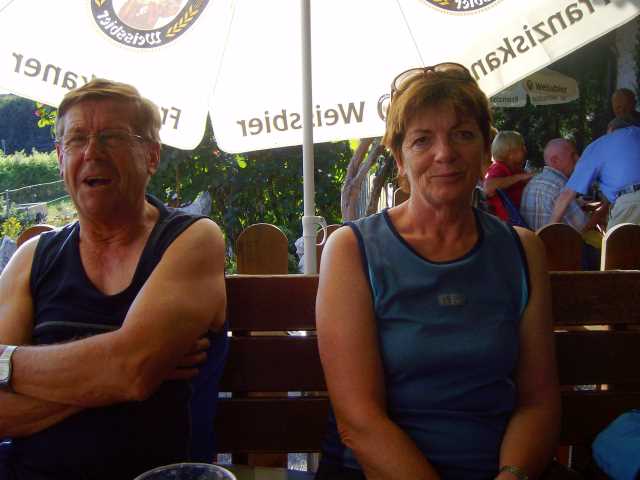 Nach soviel Fernsicht und „Anstrengung“ (41 km, 420 Höhenmeter) hatten wir uns jetzt eine Pause verdient. Wir kehrten in einem Biergarten in Falkenstein ein. Kaum saßen wir, kam eine größere Gruppe von Radlern an (sie waren mit dem Radlerbus aus Regensburg gekommen und wollten dann mit den Rädern zurück fahren). Dummerweise wurden sie zuerst bedient und wir mußten warten. Die Bedienung war nicht die schnellste und das Essen bestimmt nicht super. Wenn wir es gewußt hätten, wären wir garantiert wo anders eingekehrt. Aber die Stärkung und die Pause taten uns doch gut.