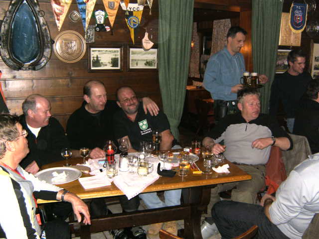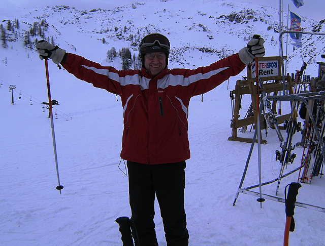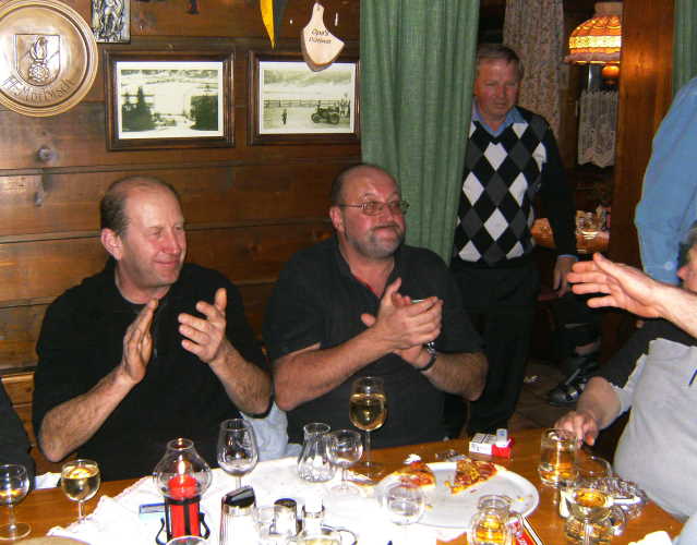 3.Tag: Der Samstag hatte Oper gefordert. Nur Peter und „Hatsch“ konnten am Sonntag noch aufstehen. Ein Anruf bei Siggi war umsonst. Das „Weichei“ schwächelte so wie die anderen. So fuhren nach einem guten Frühstück nur noch Tom und ich auf den Berg. Das Wetter war heute nicht optimal. es schneite leicht und die Sicht war nicht gut. Ein paar Abfahrten waren aber doch drin. Schließlich mussten wir aber wieder ins Tal, da wir um 12:00 Uhr alle gemeinsam zum Weißwurstfrühstück ins Zelt wollten.