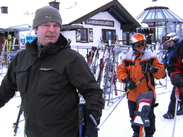 Wir zogen erstmals in diesem Jahr unsere Skiausrüstung an und schon ging es mit der 4-er Gondel und dann weiter mit der 3-er Sesselbahn nach oben auf den Rosskopf. Hier wechselten wir gleich auf die andere Bergseite und fuhren im sehr griffigen Schnee nach Zauchensee runter. Auch wenn es erst die ersten Schwünge in diesem Jahr waren, so wurde gleich wieder rasant gecarvt. In Zauchensee nahmen fuhren wir gleich mit der 4-er Gondel „Schwarzwandbahn“ nach oben. Die Sonne schien zwar nicht, aber die Sicht war doch sehr gut. Der Schnee war bestens und die Pisten super präpariert. So fuhren wir nach der Abfahrt gleich wieder hoch und dieses Mal auf der Weltcuppiste runter. Die etwas anspruchsvollere Piste war noch besser zu fahren als die andere. Dieses mal fuhren wir mit dem 6-er Sessel Gamskogel hoch und gleich wieder auf der Weltcuppiste runter. Nach einer weiteren Fahrt mit der Gondel und dem 6-er Sessel, bekamen einige Durst. Zum Glück waren wir gerade an der Gamskogelhütte. Und so war es klar, dass wir eine Pause einlegten. Immerhin war es auch schon fast 12:00 Uhr.