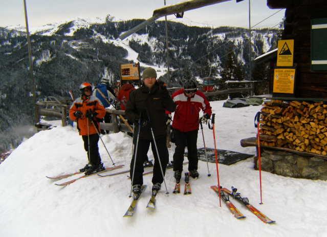 Zu dritt fuhren wir jetzt ins Tal der „Roten-Acht“ in Wagrain. Wieder ganz oben ging es dieses Mal auf der anderen Abfahrt nach Wagrain runter und gleich wieder mit den Gondeln „Flying Mozart“ hoch. Als nächstes war zuerst die rote, dann die schwarze Abfahrt am „Topliner“ dran, bevor wir wieder Richtung Wagrain runterfuhren. Wieder oben am Berg wechselten wir Richtung Flachau und trafen an der Mittelstation auf einige andere Skifahrer unserer Truppe. Gemeinsam fuhren wir weiter zum Ziel „Brennalm“ wo wir uns mit allen treffen wollten. Obwohl ich mich hier gut auskannte, meinten andere, dass wir falsch fuhren. So folgten wir ihnen eben und fuhren dann auch tatsächlich falsch. So fuhren wir den Star-Jet III und den Star-Jet II eben auf der Suche nach der Skihütte eben nochmals. Schließlich erklärte ich allen nochmals wo die Brennalm liegt und fuhr los. Schon bald waren wieder alle weg. Waren sie wieder falsch gefahren? Ich fuhr allein zur Brennalm. Als ich meine Skier schon abgestellt hatte und einige Zeit wartete, kamen die anderen aber tatsächlich so nach und nach auch an der Brennhütte an.
