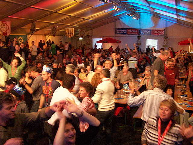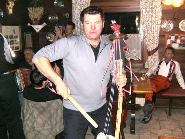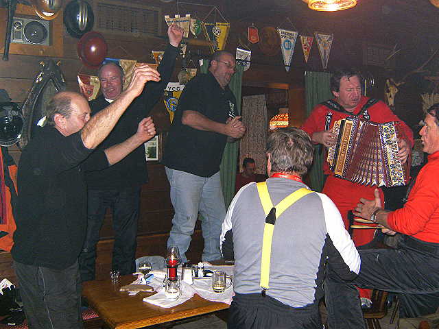 Als wir uns umgezogen hatten, sassen alle anderen schon in der Kaminklause bei „Pepi“. Es kostete einige Mühe die anderen dazu zu überzeugen, dass wir nicht sitzen bleiben konnten, da wir ja wieder heim mussten. Schließlich machten wir uns aber alle teils zu Fuß, teils mit unserem Bus, auf zum Festzelt.