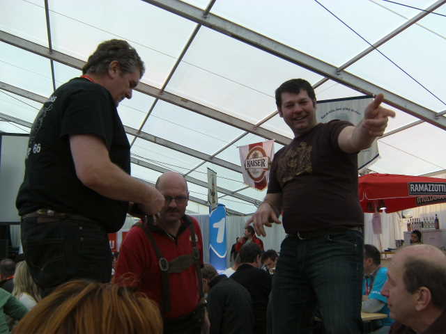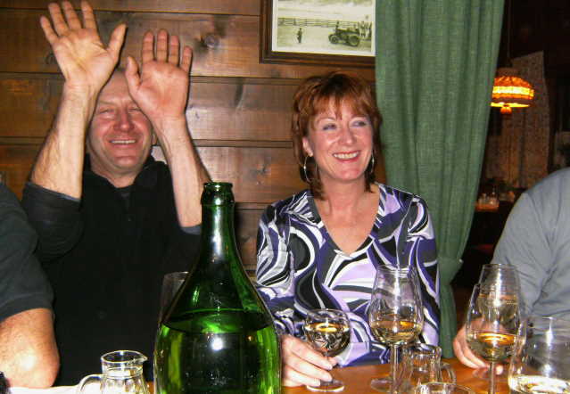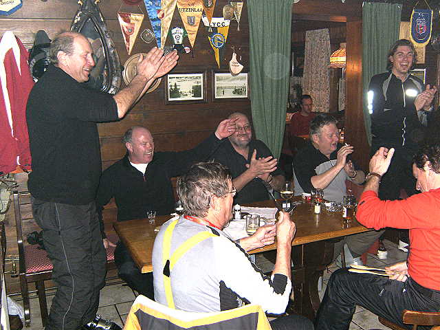 Hier trafen wir alle wieder zusammen. Die Chefin bereitete die von uns mitgebrachte Brotzeit zu, es gab guten Wein von „Pepis“ eigenem Weingut und einige „Beschleuniger“ zwischendurch. So war es kein Wunder, dass wir lieber hier blieben und nicht mehr ins Festzelt zum Essen gingen. Wir feierten, sangen und hatten bis tief in die Nacht jede Menge Spaß. Ein „Wunder“ nur, dass tatsächlich irgendwann alle wieder ins daneben liegende Hotel und ins Bett fanden.