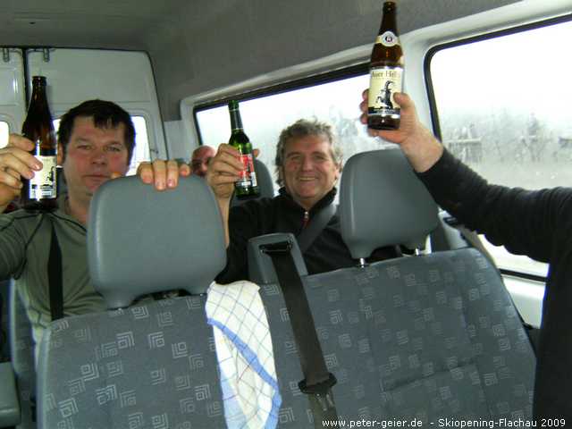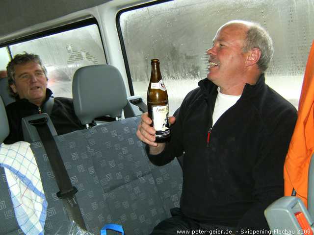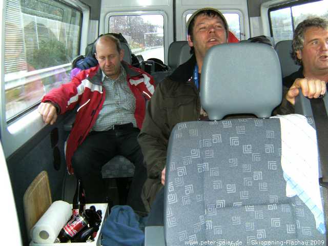 Nach zwei „Skifahrerversammlungen“ im Gasthaus Spitzer, ging es am 04.12.2009 endlich los nach Flachau. Wir -sieben Männer aus der Hallertau – fuhren mit einem gemieteten Kleinbus Richtung Salzburger Land. Dabei waren Sggi, Peter, Hans, „Speitl“, Martin, Georg und „Hatsch“. Siggi, unser bewährter Fahrer, steuerte uns im Regen sicher über die Autobahn.