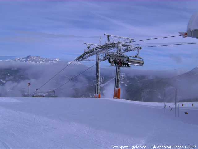 Nach der Pause fuhren wir mit dem Star-Jet 2 und weiter mit dem Star-Jet 3 nach oben. Jetzt herrschte bestes Winterwetter. So sah ich auch gleich, dass auf Wagrainer Seite der Lift zum Gipfel geöffnet hatte. Natürlich mußten wir hin. Mit dem Top-Liner ging es nach oben und dann gleich die einzige schwarze Abfahrt des Skigebietes runter. Dann probierten wir auch noch die andere Abfahrt des Liftes aus, bevor wir wieder Richtung Flachau fuhren. Noch einmal fuhren wir zum Space-Jet 3 runter. Dann beendeten wir den schönen Skitag mit der abschließenden Talfahrt per Achter-Jet.
