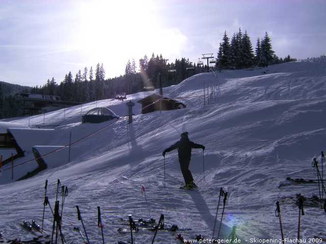 Kaum hatten wir Österreich erreicht, da hörte es tatsächlich zu regnen auf. Der Himmel war aber ziemlich voller Wolken. Dieses Jahr hatten wir uns für den ersten Skitag kein anderes Ziel ausgesucht, da wegen Schneemangel fast kein Skigebiet geöffnet hatte. So fuhren wir gleich nach Flachau, wo neben der 8-er Gondel als Zubringer drei Sesselbahnen geöffnet haben sollten. Wir bezogen im Hotel Hartl unsere Zimmer und machten uns für den Skitag fertig.