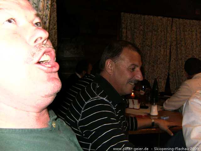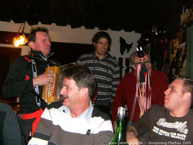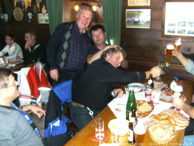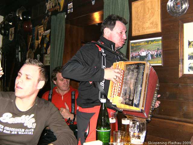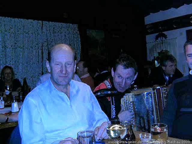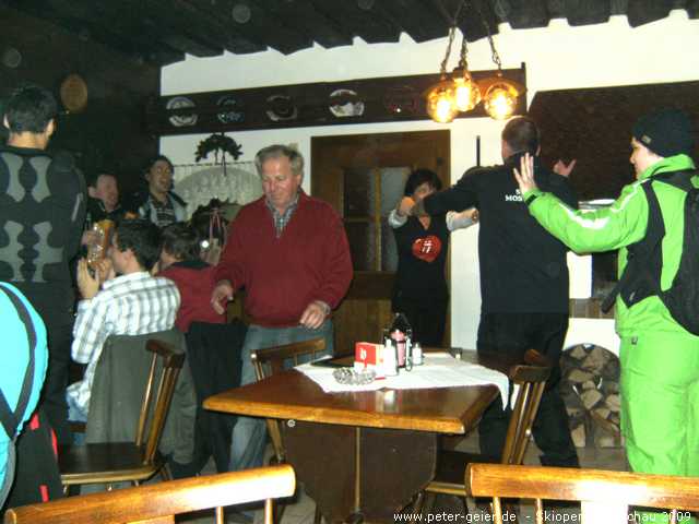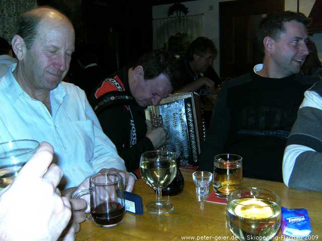 Wir drei nutzten auch heute wieder das Wellness-Angebot unseres Hotels ausgiebig. Für 18:30 Uhr hatten wir uns dann bei „Pepi“ in der Kaminklause verabredet. Hier trafen wir alle wieder zusammen. Die Chefin bereitete die von uns mitgebrachte Brotzeit zu, es gab guten Wein von „Pepis“ eigenem Weingut und einige „Beschleuniger“ zwischendurch. Als dann auch noch der schon vom letzten Jahr bekannte Musiker mit der „Quetschn“ aufspielte war klar, dass wir lieber hier blieben und nicht mehr ins Festzelt zum Essen gingen. Wir feierten, sangen und hatten bis tief in die Nacht jede Menge Spaß. Zu „ganz später Stunde“ zog es die „ganz harten“ dann doch noch ins Festzelt und in den Musistadl, wohingegen wir Skifahrer lieber heim ins Hotel gingen.