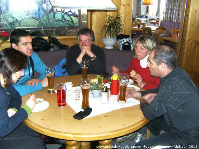 Da es inzwischen 15:00 Uhr geworden und der viele Schnee ganz schön kraftraubend war, hörten wir Erwachsenen auf, während die Jungs natürlich nochmal nach oben mußten. Wir brachten unsere Skiausrüstung in den Bus und zogen unsere normalen Skischuhe an. Dann gingen wir in die Bar „Liftstüberl“ wo wir mit anderen aus unserem Bus zusammentrafen. bei einem kühlen Getränk liesen wir den sehr schönen Skitag ausklingen.