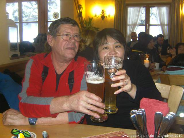 Der viele Schnee machte uns doch einige Probleme und kostete auch Kraft. Auf der Suche nach einer Skihütte fuhren wir nochmals mit dem Kreuzwankl-Ski-Express und kehrten dann im Garmischer Haus ein.