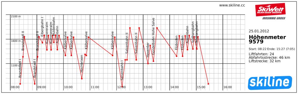Wir sind heute mit 24 Liften ca. 32 km und 46 km mit den Skiern gefahren!