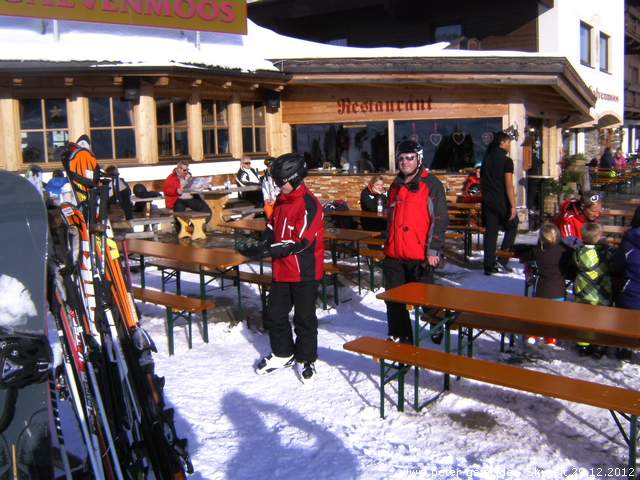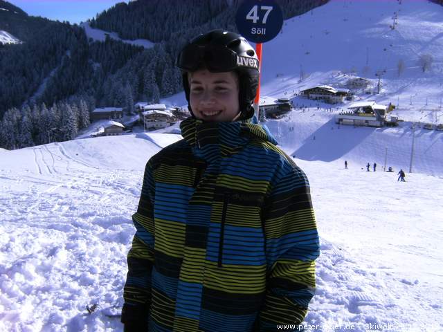 Am 29.12. war es dann aber soweit. Es hatte Neuschnee gegeben und Sonnenschein war angekündigt. Meine Neffen Christoph und Richard waren sofort dabei und Walter fuhr auch mit. Schon um 6:15 Uhr fuhren wir los. Es gab zwar einige Stockungen auf der Autobahn, wir kamen aber doch problemlos nach Scheffau. Als wir um 8:15 Uhr ankamen, war die Tiefgarage doch tatsächlich schon voll. So parkten wir eben im Freien. Schnell hatten wir die Ausrüstung angezogen und Liftkarten gekauft.