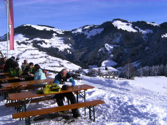 Nach der Pause ging es mit dem Hexen6er hoch, dann weiter mit der Keat-Bahn zur Siller-Keat-Bahn, die wir zweimal runter gefahren sind. Über die Filzboden- und Aualmbahn erreichten wir wieder das Skigebiet von Scheffau. Hier ging es wieder zur Kummeralmbahn, über die wir ins Skigebiet von Ellmau wechselten. Vorbei an der Tanzbodenbahn fuhren wir zum Kaiserexpress und damit auf den Hartkaser hoch. Jetzt ging es zum Elmis6er runter und erneut zum Hartkaser. Hier oben legten wir unsere Nachmittagspause ein.