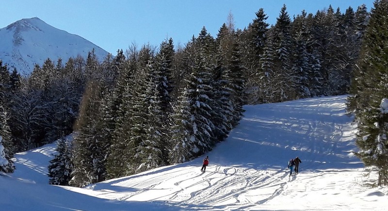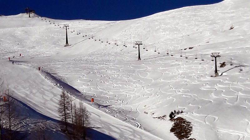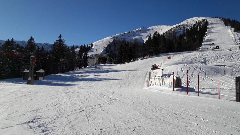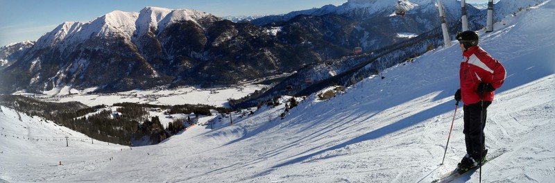 Auch wenn es hier nur wenige Lifte gibt, so kann man doch auf zwei bzw. sogar drei verschiedenen Pisten ins Tal fahren. Der Nordhang war heute etwas hart, wohingegen der Schnee auf den anderen Abfahrten super griffig war. Um 14:30 Uhr beendeten wir den schönen Superskitag dann mit einem Kaffee an der Talstation.