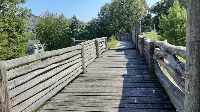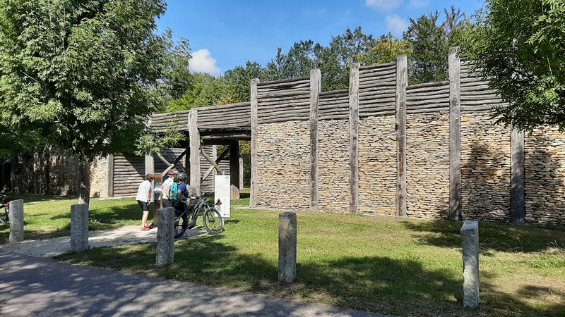 Entlang der Altmühl gibt es mehrere Stationen vom Archäologiepark Altmühltal. An der Schleuse Kelheim-Gronsdorf machten wir am keltischen Stadttor kurz halt.