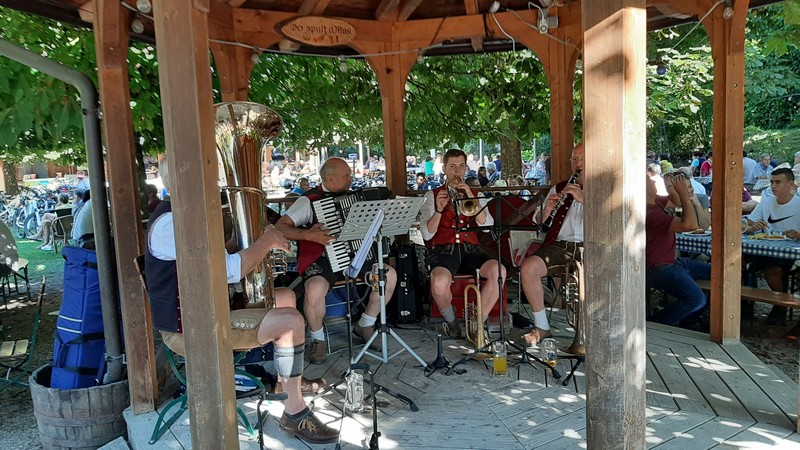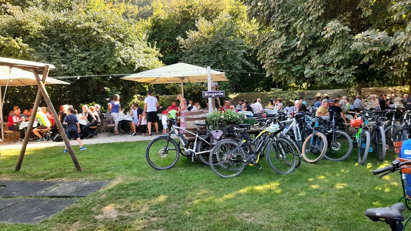 Im Biergarten „Fuchsgarten“ legten wir eine etwas längere gemütliche Pause bei Biergartenmusik ein. Hier war heute einiges los. Viele Radfahrer hatten wohl auch das schöne Wetter ausgenutzt.