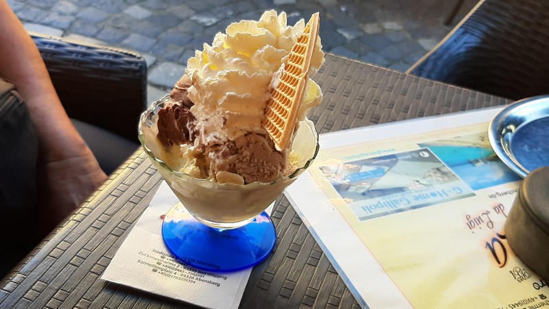 In Abensberg machten wir am Stadtplatz dann doch nochmals Pause. Ein kühles Eis geht eben immer!