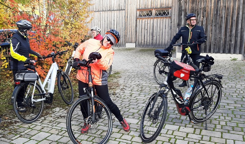 Da heute auf die Winterzeit umgestellt worden war, wurde es draußen bald schon leicht dunkel, so daß wir gleich nach der Brotzeit mit den Rädern und eingeschalteter Beleuchtung zurück zu unseren Autos fuhren.