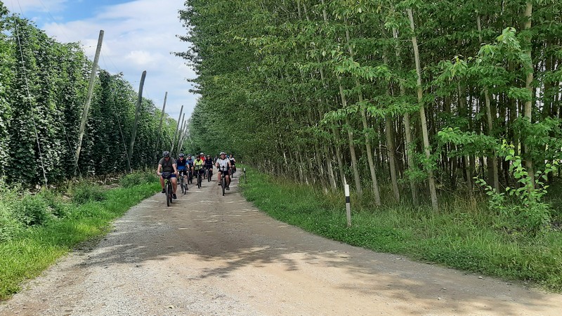 Die drei Tourführer, die mit ihren Gruppen vom Rathaus in Rudelzhausen starteten, hatten drei verschiedene Touren durch die Hallertau angeboten. 18 Radler waren unter Führung von Peter Geier mit E-Bikes unterwegs, 6 Radler unter Führung von Gerwald Niedermaier mit Rädern ohne E-Unterstützung und 4 E-Biker unter Führung von Heinrich Heigl.