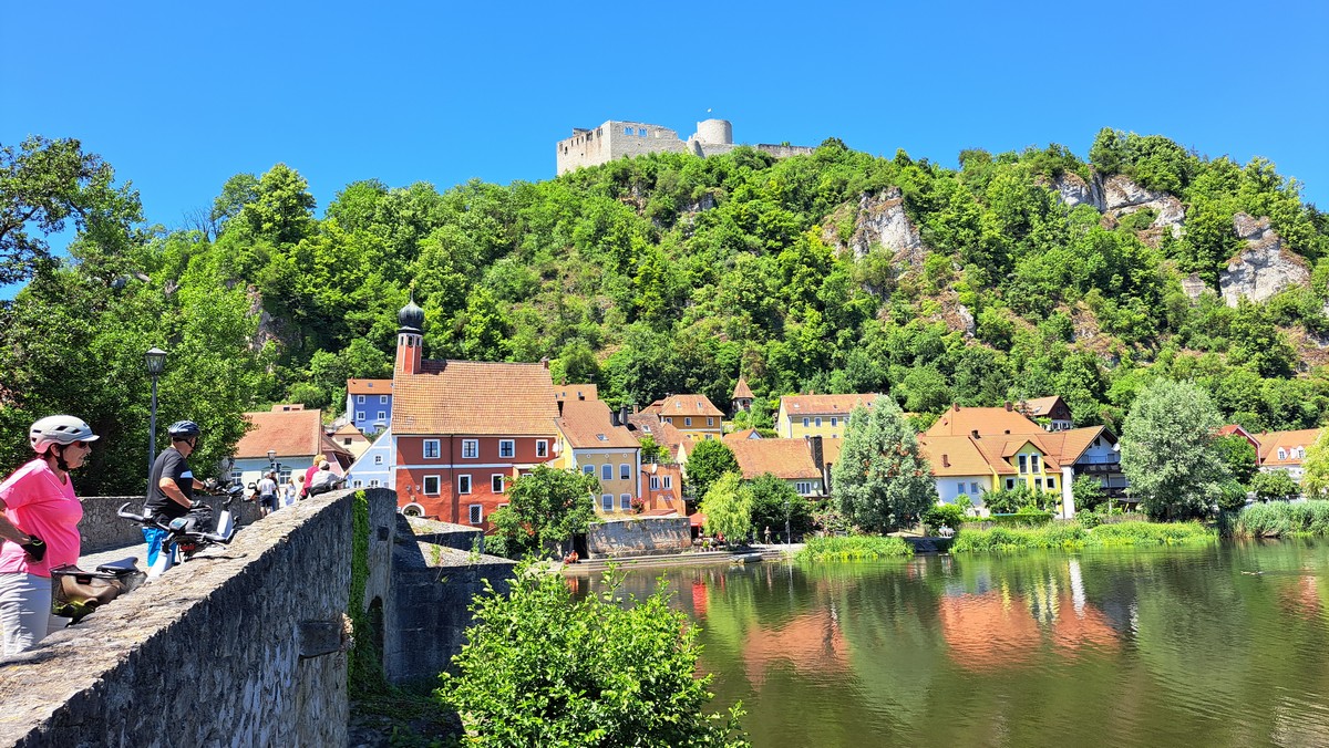 Nach der Mittagspause fuhren wir die letzten Kilometer an der Naab bis Kallmünz. Natürlich fuhren wir dort auch durch den Ort, der direkt an einem Felsen gebaut ist.