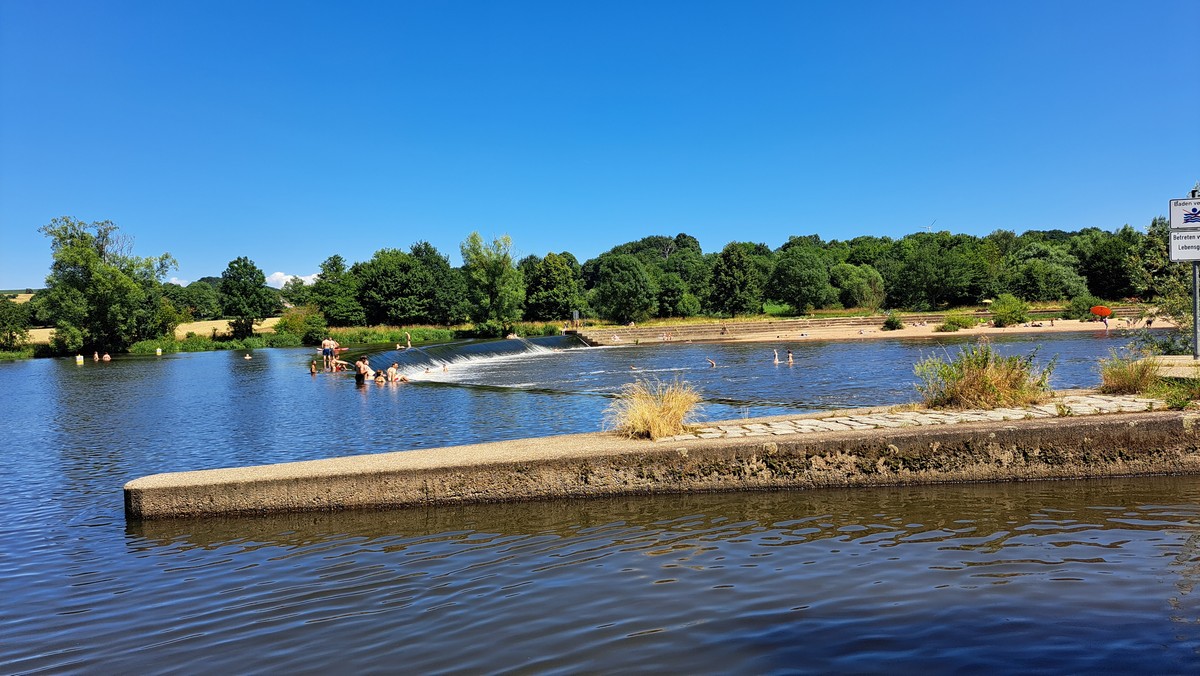 Abkühlung im Regen am Flußbad Pielmühle