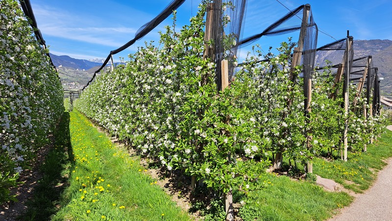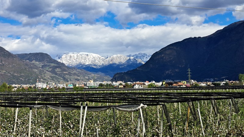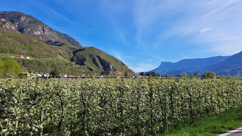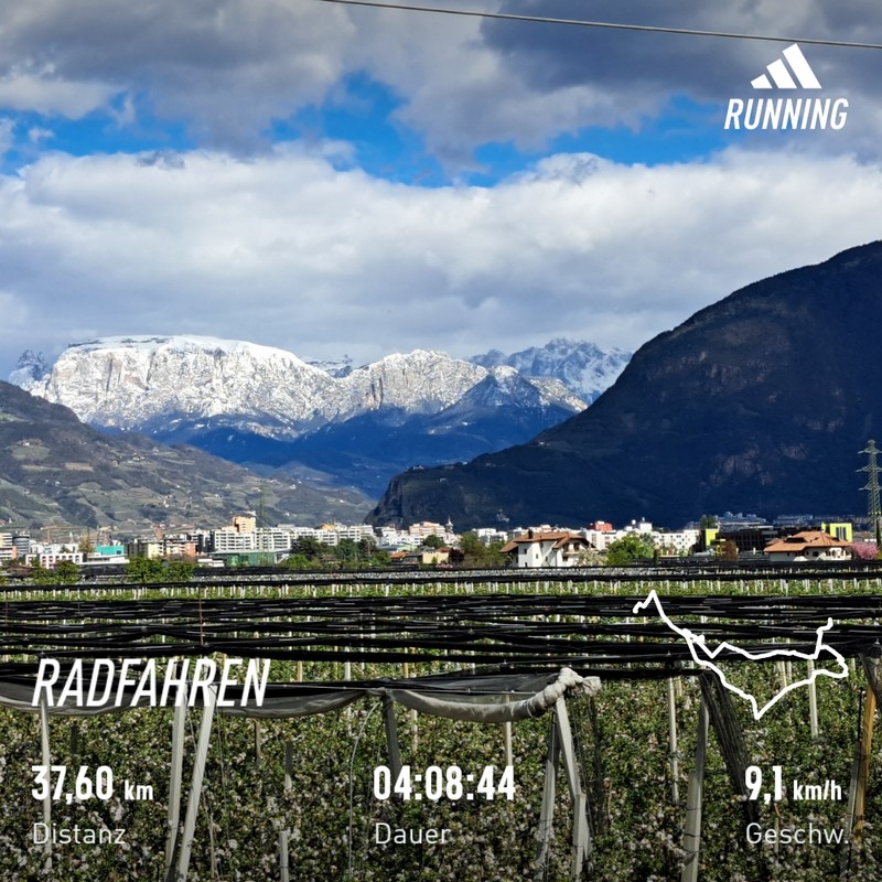 Jetzt führte uns der Weg ziemlich lange bergab bis zur Straße Richtung Andrian. Vorbei an vielen Apfelbäumen erreichten wir nach 38 Kilometern wieder unser Hotel.