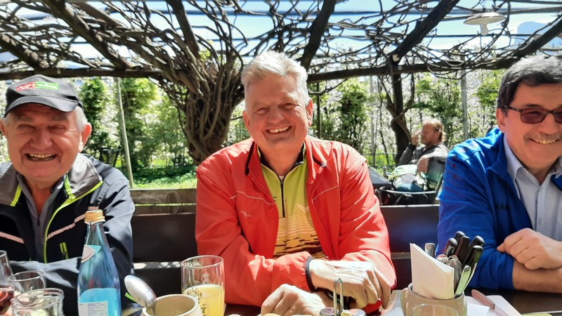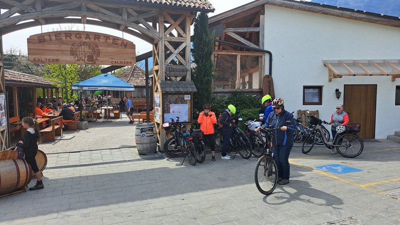 Nach einem kurzen Halt am Ende des Radweges in Kaltern fuhren wir zum dortigen Biergarten. Für die meisten von uns gab es wieder „Tris“ (3 Knödel -Speck-Spinat-Käse- mit Krautsalat) – sehr lecker!